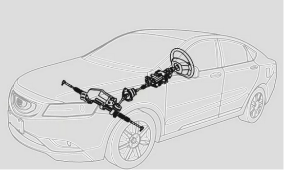 电机自产助力力矩经放大→机械式转向系统→加上驾驶员的操纵力矩→克服转向阻力矩→实现转向。